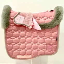 Mattes Eurofit Dressage Saddle Pad Blush Pink With Cream Sheepskin