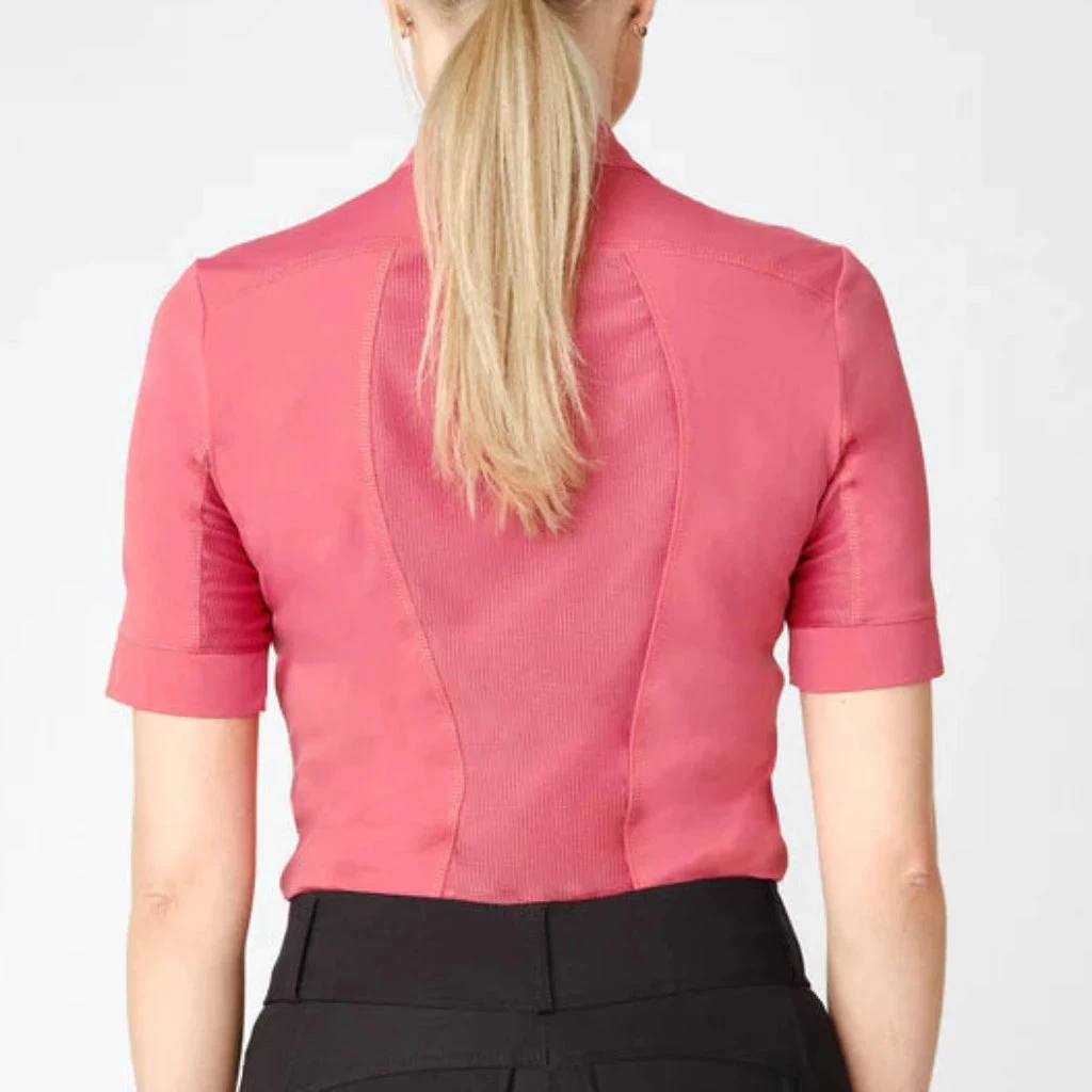Short sleeve base layer made in technical polyamide blend and with breathable mesh panels. The garment’s stylish and functional features include stand-up collar with half button placket, decorative seams and tonal PS monogram print at chest.