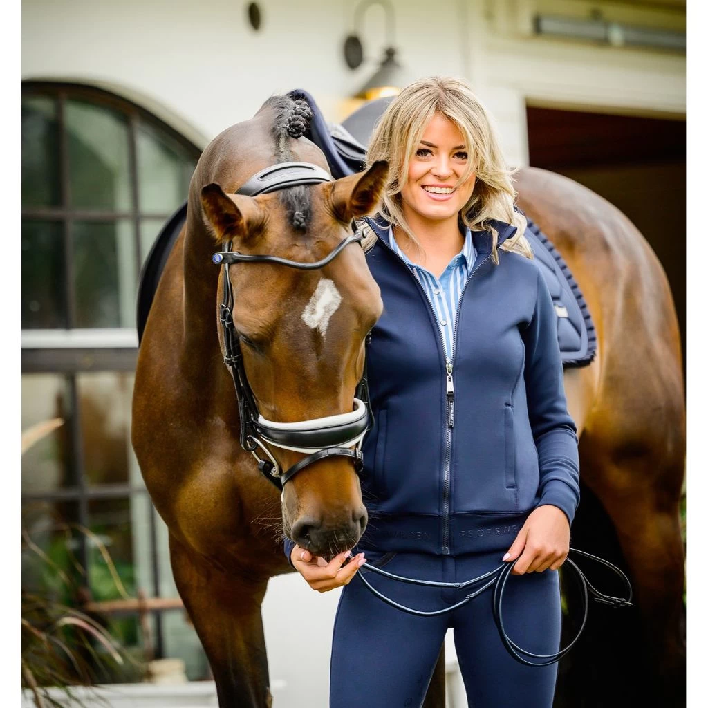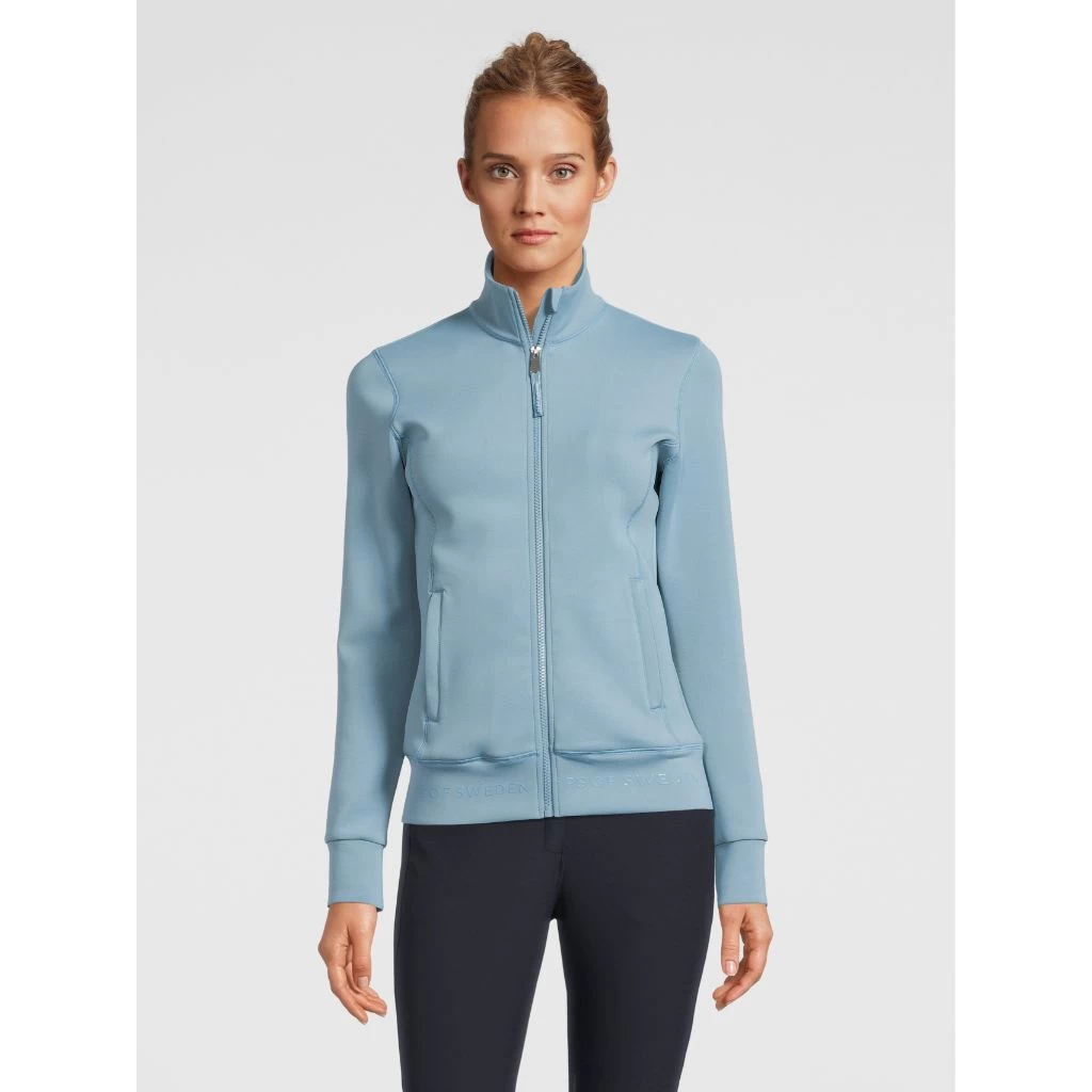 Figure-shaped riding jacket, shorter model. Very soft and comfortable, perfect to wear under a vest when the weather is changing. Four-way stretch. A sturdy zipper to open and close, and two zipped, spacious pockets. PS of Sweden print on the wristlet. The collar is semi-tall and extremely soft.