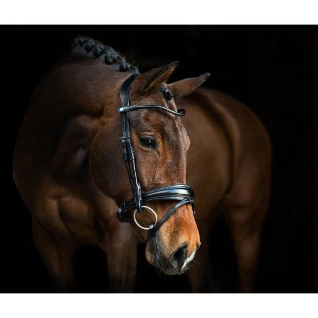 The leather of the noseband is shaped to be wider in the middle and gets thinner on the sides. At the center of the noseband it is 5,5 cm wide.