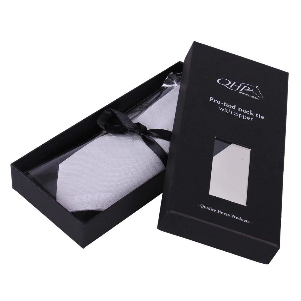 The QHP John tie is easy to put on because of the hidden zipper closure.