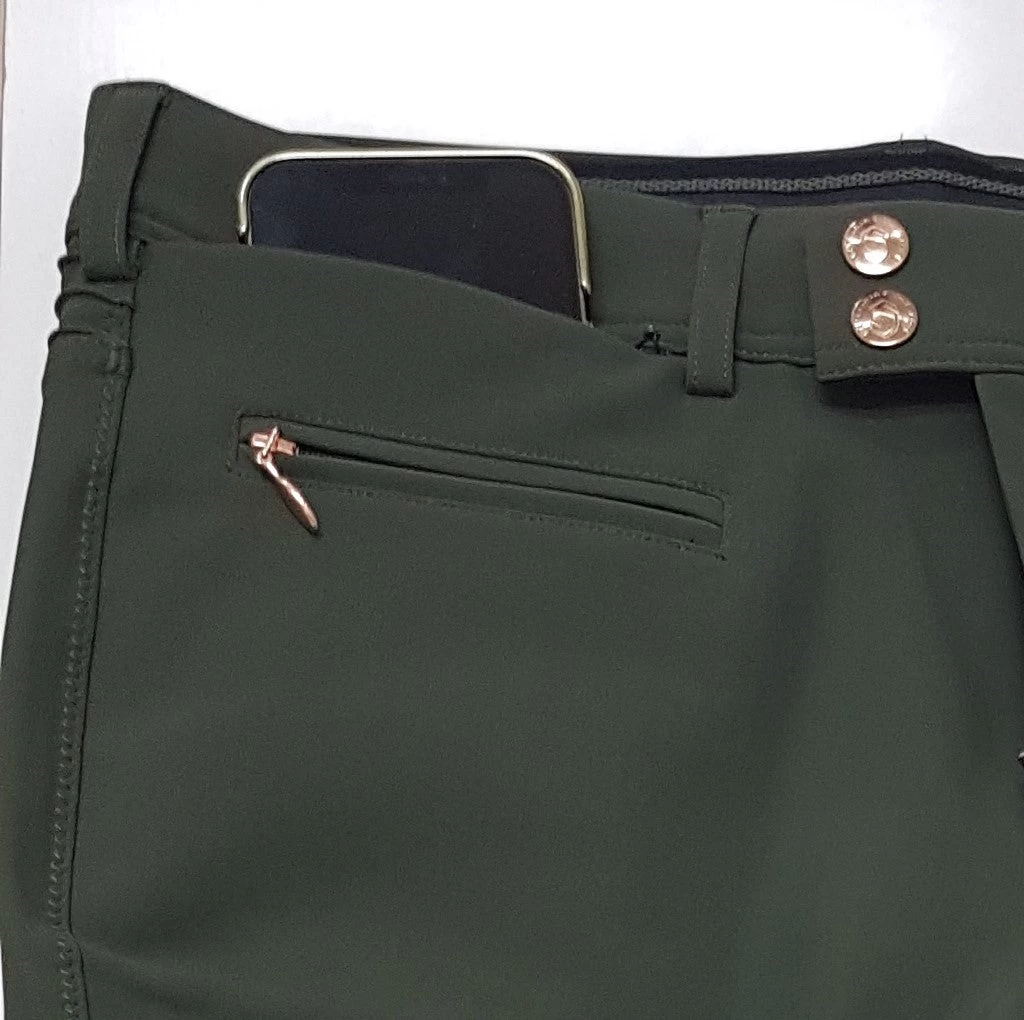 *Please note, hidden pocket is under the waistband; it will fit a mobile phone but wont be comfortable to ride with the phone in the pocket. Better suited for money for the lesson or a card. (please see 3rd photo)