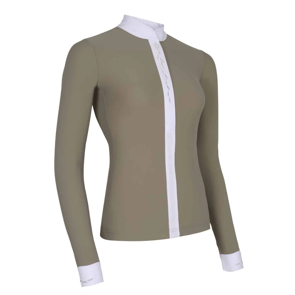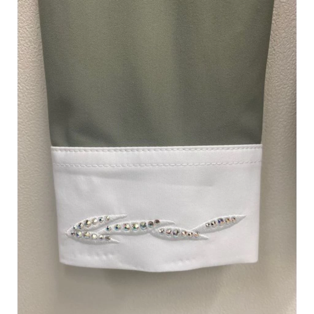 The Juliette Crystal Flower competition shirt is the perfect definition of delicate feminine design, with hand embellished Swarovski® crystals and embroidered decorations along the band covering the invisible zipper as well as around the cuffs. The collar has a traditional frill pleat.