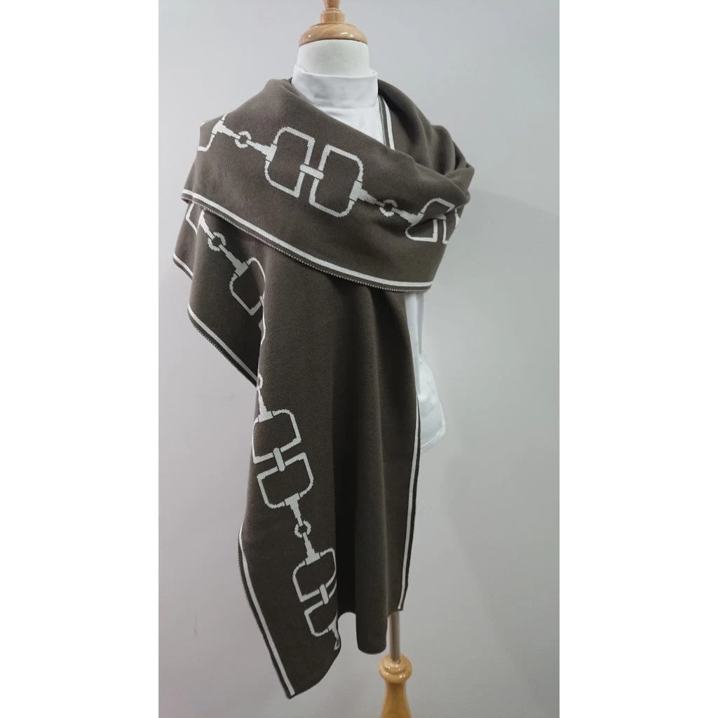 Soft and warm high quality cotton/acrylic blend with a linked bit pattern in white along the edge.